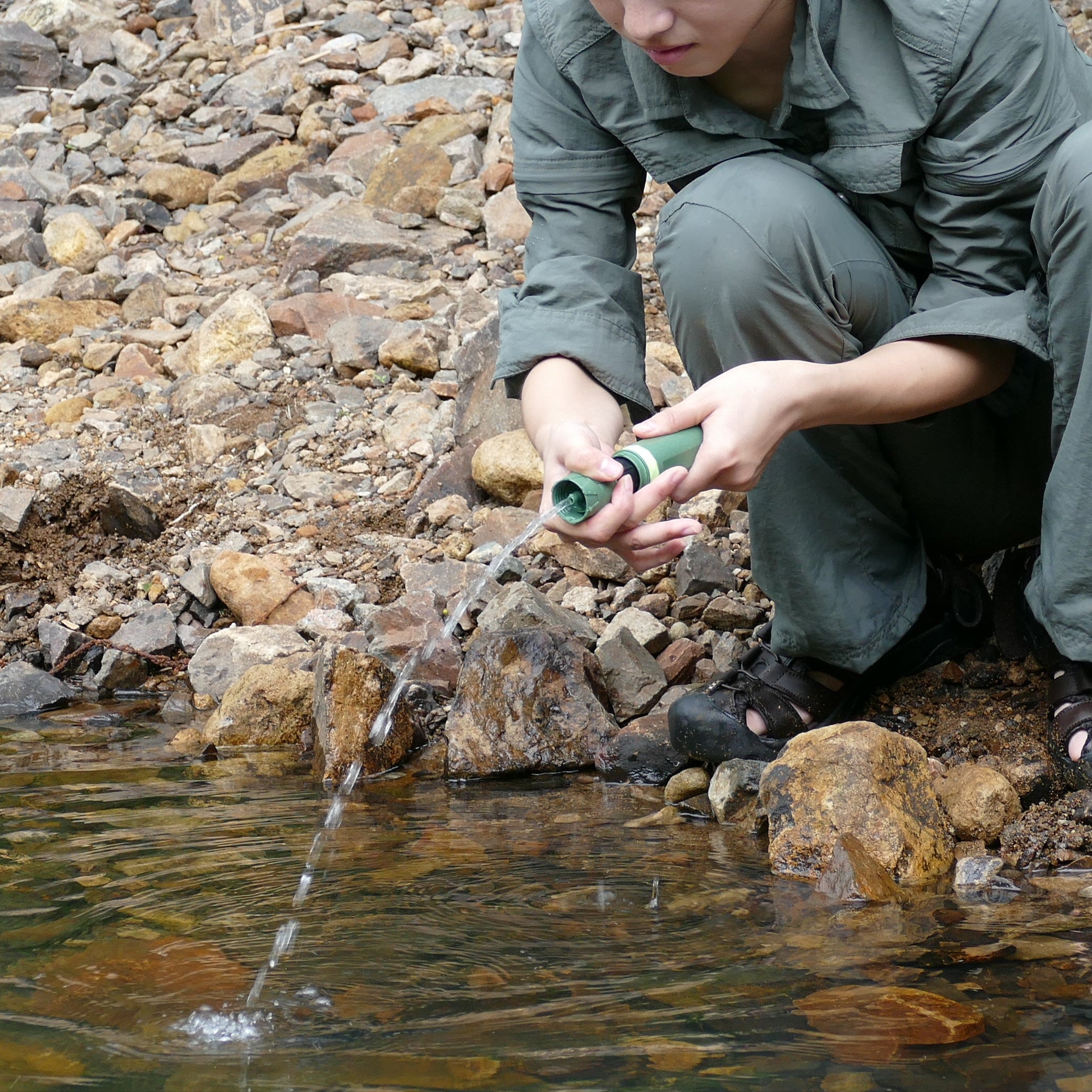 山や川の水をその場で浄水。荷物を増やさず安全な飲み水を確保。