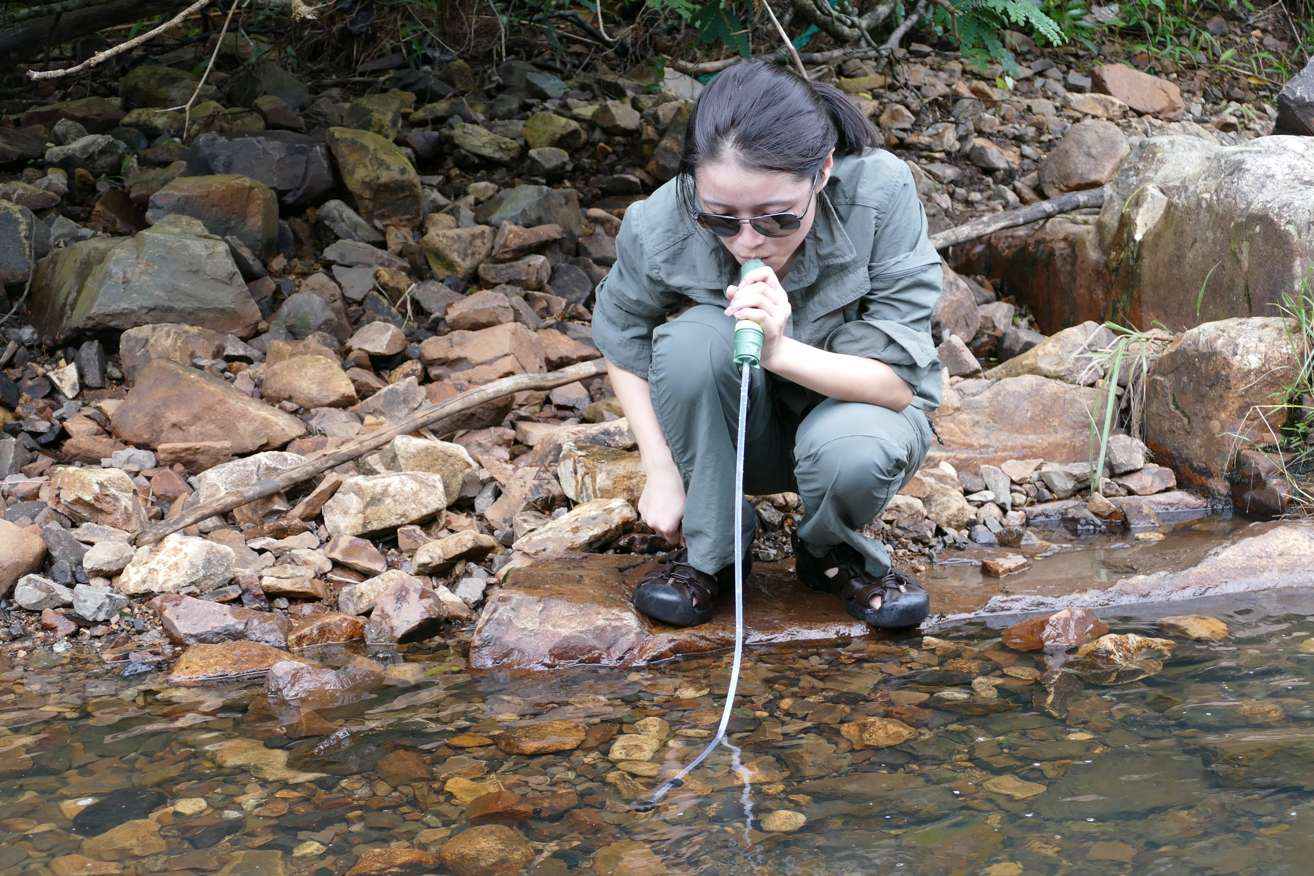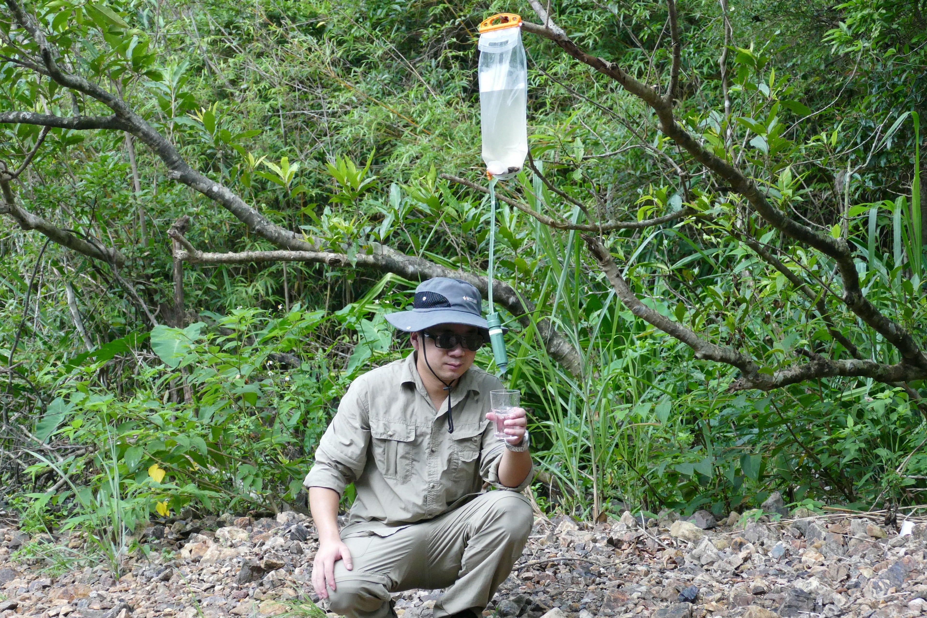 山や川の水をその場で浄水。荷物を増やさず安全な飲み水を確保。